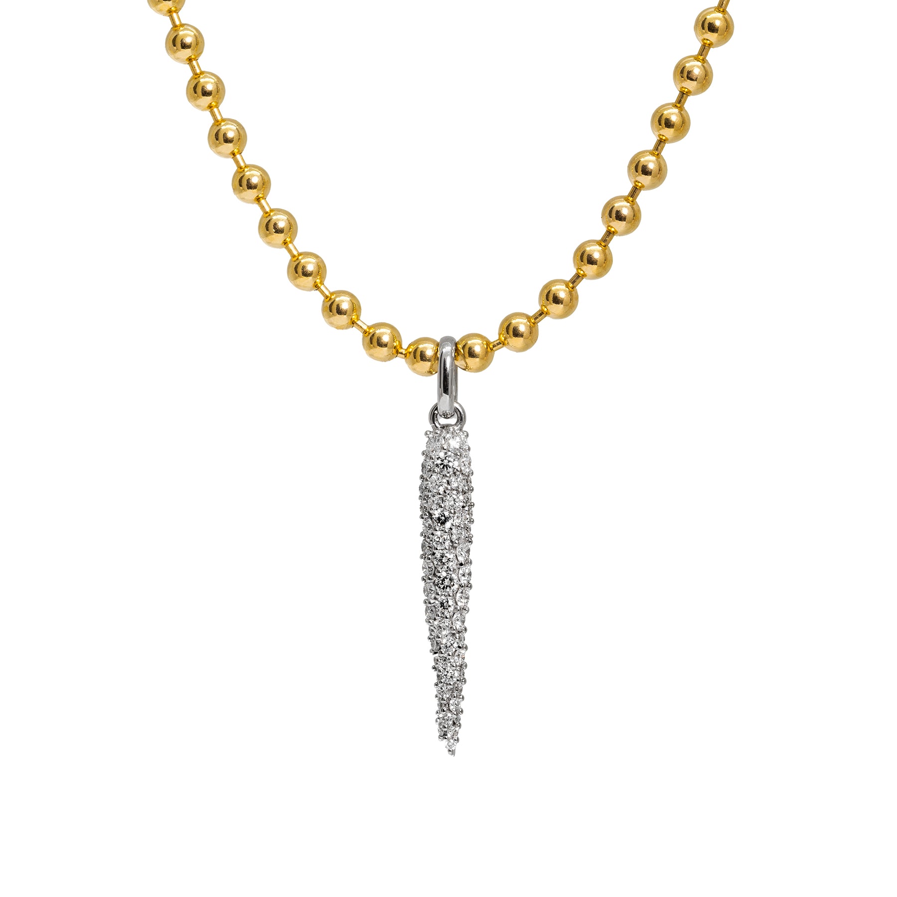 A symbol of protection with centuries of history. The cornicello, or “little horn,” traces back to Italy, where it was worn to guard against the evil eye and invite good fortune. Our version is crafted in solid 14k gold and fully covered in pavé lab-grown diamonds, bringing brilliance to its storied shape. Modern yet timeless, it makes the perfect addition to a charm necklace—a piece that carries meaning beyond borders and shines as both talisman and statement.